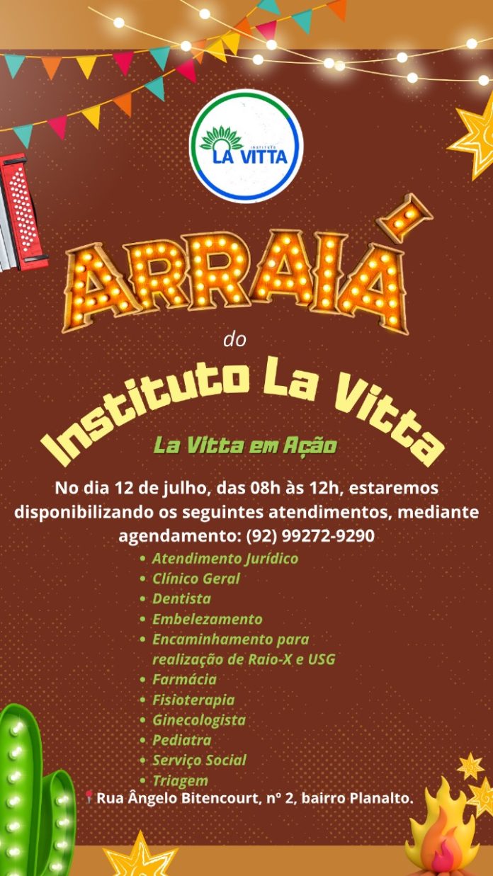 O mês mais esperado do ano já começou, e com ele o Instituto La Vitta prepara uma grande ação social com atendimentos gratuitos nas áreas da saúde e jurídica. A atividade será realizada em sua sede, localizada na Rua Ângelo Bitencourt, n.º 2, bairro Planalto, zona Centro-Oeste de Manaus.